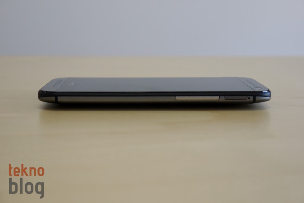 Sol kenarda nanoSIM kart tepsisi bulunurken ona karşı gelen tarafta da microSD kart tepsisini görüyoruz. Bu iki tepsi de kutunun içinden çıkan sivri uçlu cisim yardımıyla çıkarılıyor. Ses tuşları sağ kenarda, microSD kart tepsisinin altında bulunurken güç butonunu yine üstte, sola doğru yerleştirilmiş şekilde görüyoruz. 3.5 mm. kulaklık jakı da bu butonun hemen yanında bulunuyor. Alt kenarda microUSB portu yer alırken arkada da 13 megapiksel kamera, LED flaş ve mikrofonun yan yana yerleştirildiğini görüyoruz. HTC logosu da telefonun arkasında, ortalanmış şekilde görünüyor ve oldukça hoş duruyor.