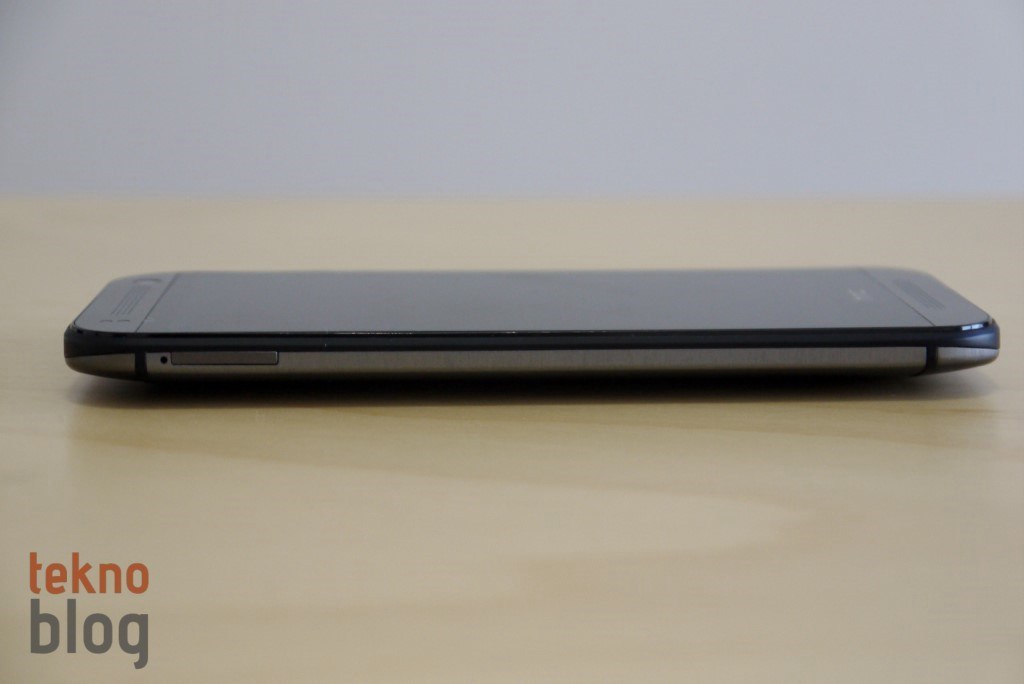 Arka yüzün kavisli olması telefon rahat tutulmasında avantaj sağlıyor. Bununla birlikte telefonu masaya veya herhangi bir yüzeye koyduğunuzda arka yüzün tamamen yüzeyle buluşmamasına neden oluyor. Bu durum kararlılıktan biraz olsun götürüyor, parmağınızla ekranın sağ veya sol kenarına hafifçe bastırdığınızda telefonun bir beşik gibi hareket ettiğini göreceksiniz. Rahatsız edici bir durum değil, ancak belirtelim istedik. Bu arada fırçalanmış metal görünümü HTC One mini 2’nin havasına ayrı bir güzellik katıyor, ayrıca telefonun üstüne ışık düştüğünde ışığın metal yüzey üzerinde etkileyici şekilde yansıdığını görüyorsunuz.
